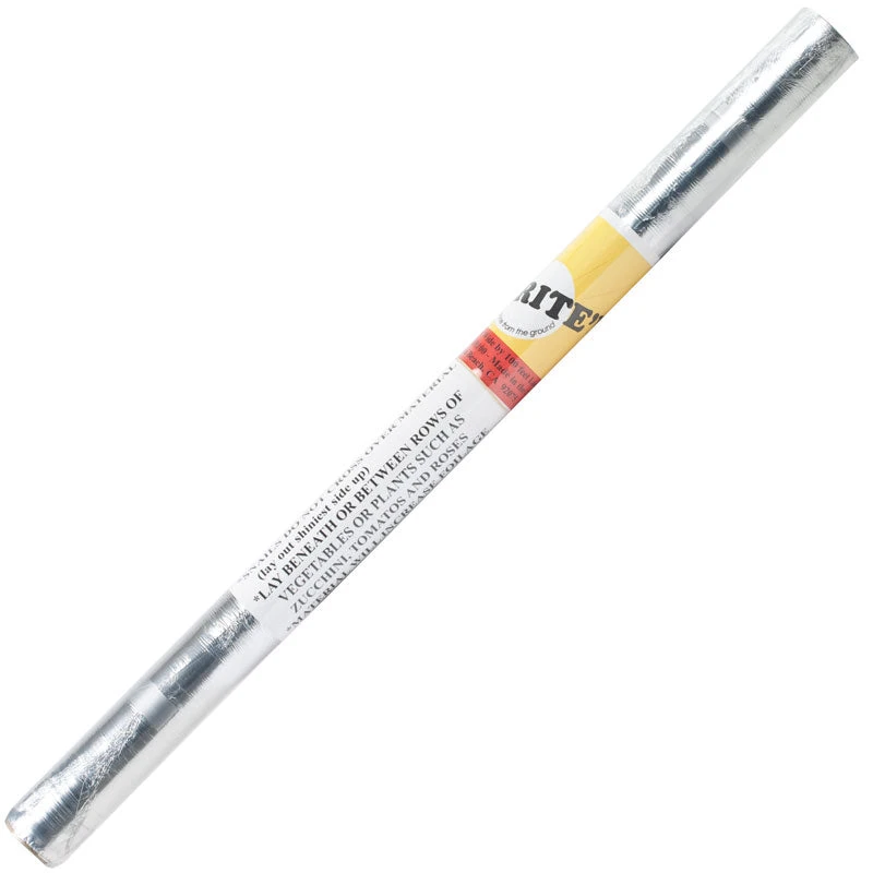 Brite-N’up is an effective and environmentally friendly silver mulch that reflects sunlight up into the undersides of the canopy thereby increasing photosynthesis. Mulches in general hold soil temperatures at consistent levels. The reflective properties of the silver mulch produces an increased light intensity that tends to repel whiteflies and aphids and snails do not like to cross over the material.